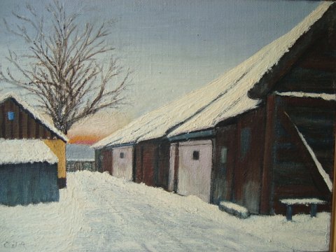 Maleri af C.J. Andersen - Gårdeksteriør, vinter.