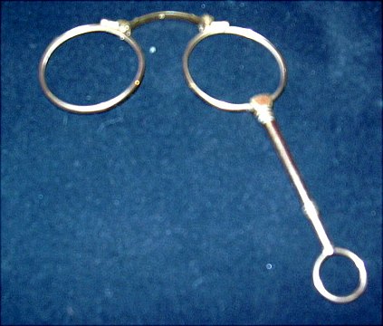Et par unikke lup-briller anno 19-20. årh. Fungerer både som lup & læsebriller. Mekanik udløser fra lup til brille. Fungerer perfekt.