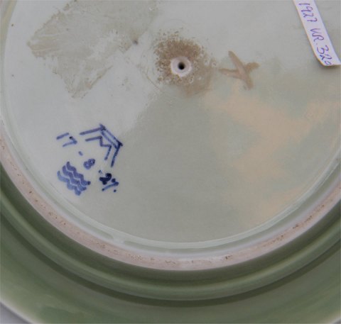 Royal Copenhagen stentøj Kgl. Celadan fad med figur 17-8-1927 Arno Malinowski 12481 I fin og hel stand Celedon