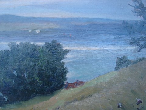 Maleri af Aage Bernhard-Frederiksen - Udsigt udover fjord.