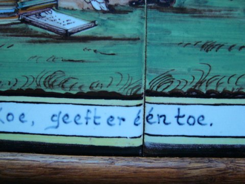 Inskription - devisen "Die pleit om een Koe, geeft er één toe"