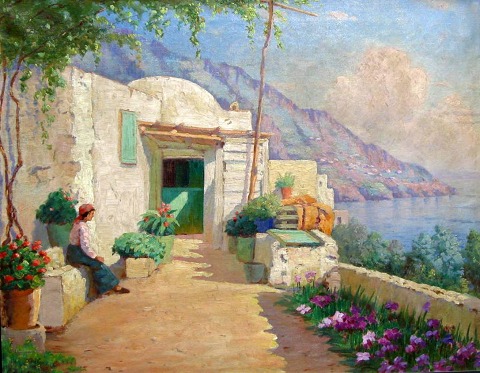 Ubekendt kunstner (20. årh.) Parti fra Sicilien, Italien. Olie på lærred. Signeret: J. Maeke....55 x 72 cm. Med forgyldt ramme.
