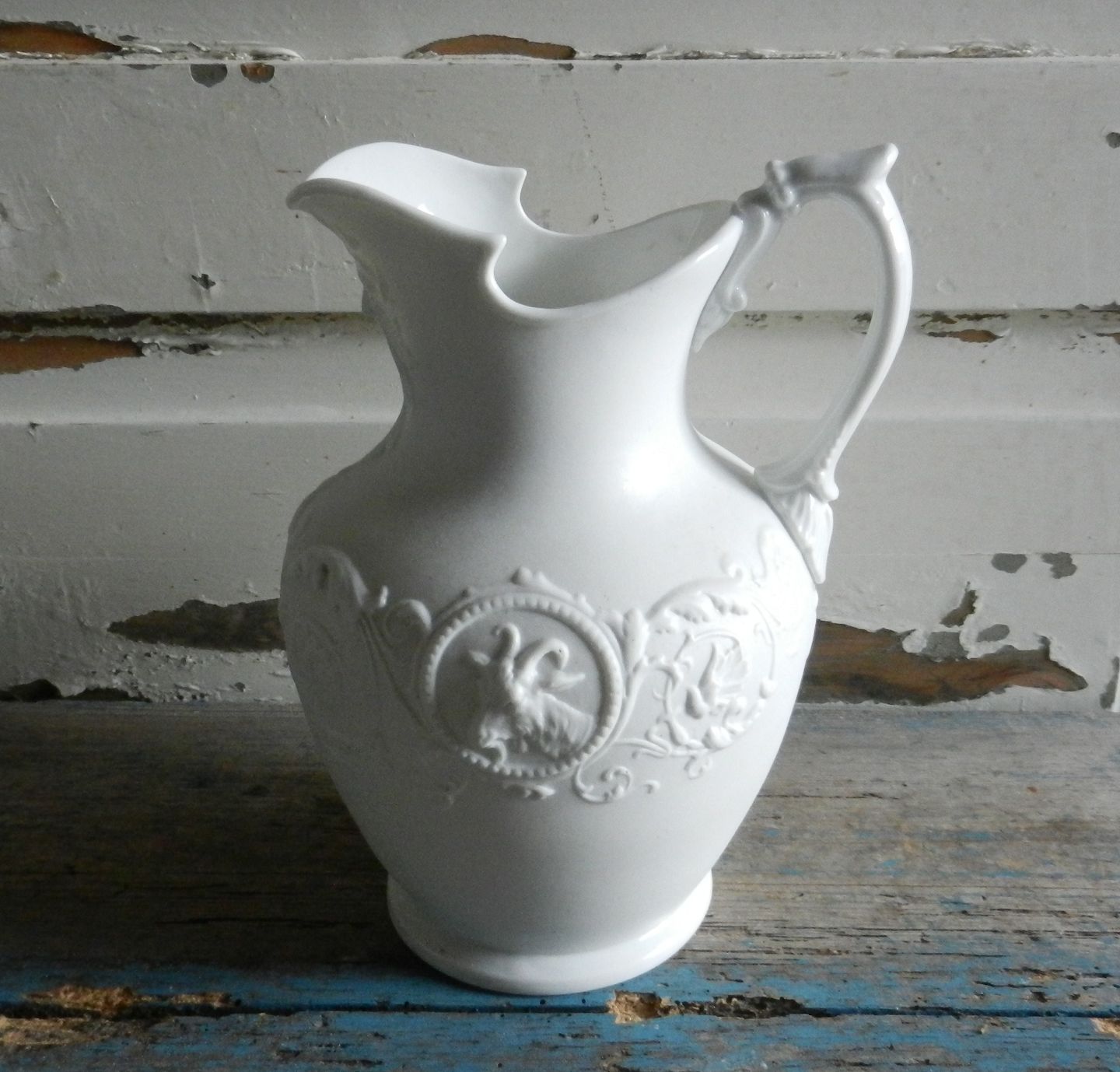 Smuk bisquit kande, indvendig glaseret, dekoreret med dyre motiver.