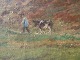 Lyngparti med mand og kreatur på vej.