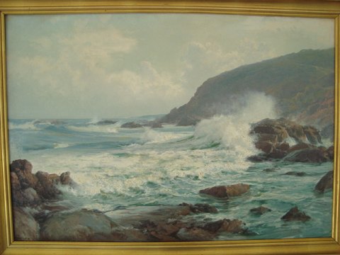 Maleri af Peder Knudsen - Brænding ved Bornholm 1925.
