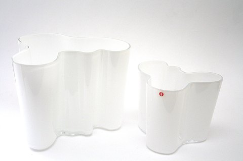 Iittala, Finland, Collection serien. Savoy vaser i opal hvid og klar glas. Designet af Alvar Aalto.