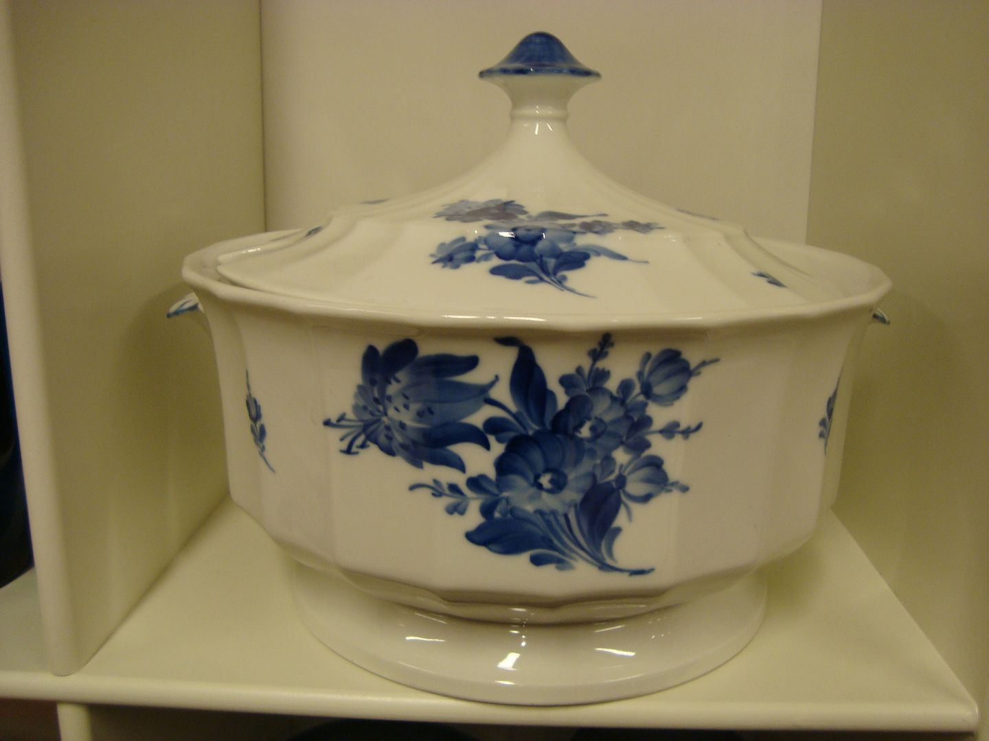 Stor Blå Blomst kantet Terrin fra Royal Copenhagen, h. 25 cm, d. 28 cm