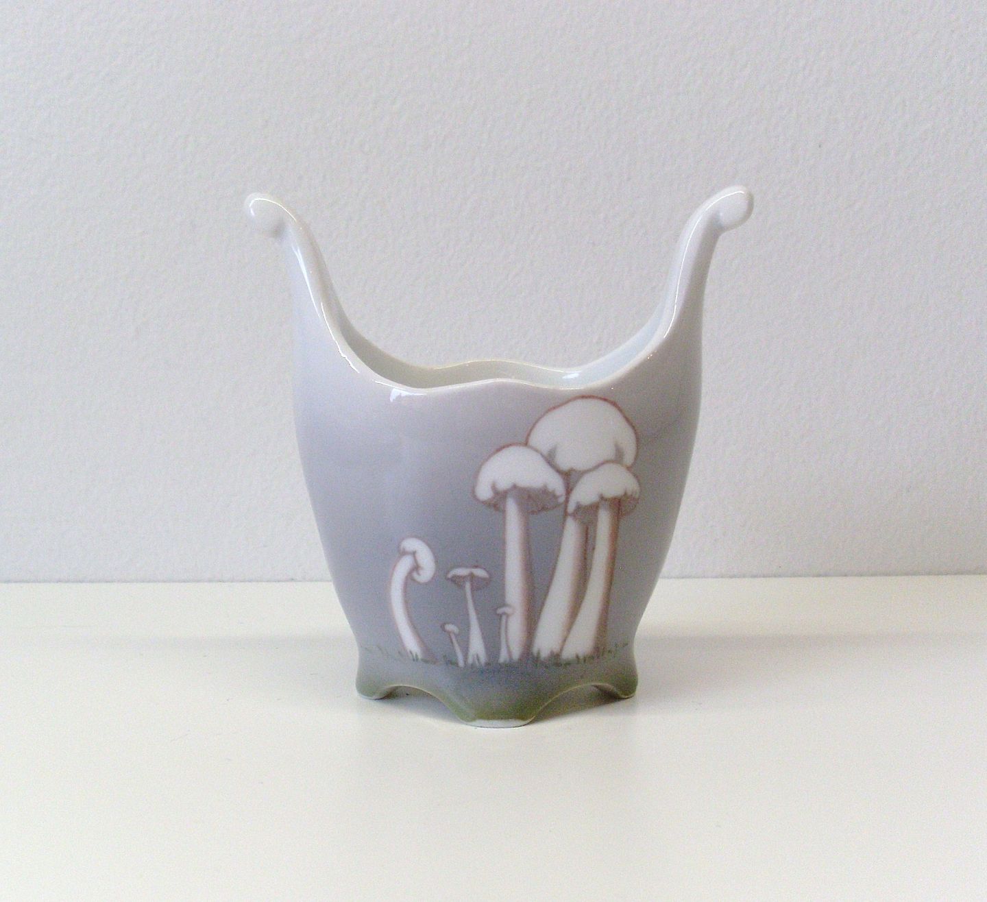 Smuk Royal Copenhagen Art Nouveau vase bemalet med svampe.