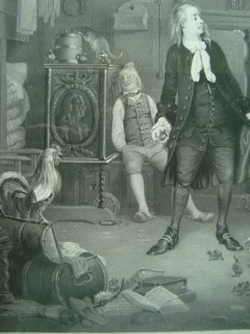 Litografi af Peter Gemzøe efter maleri af Wilhelm Marstrand - Erasmus Montanus.