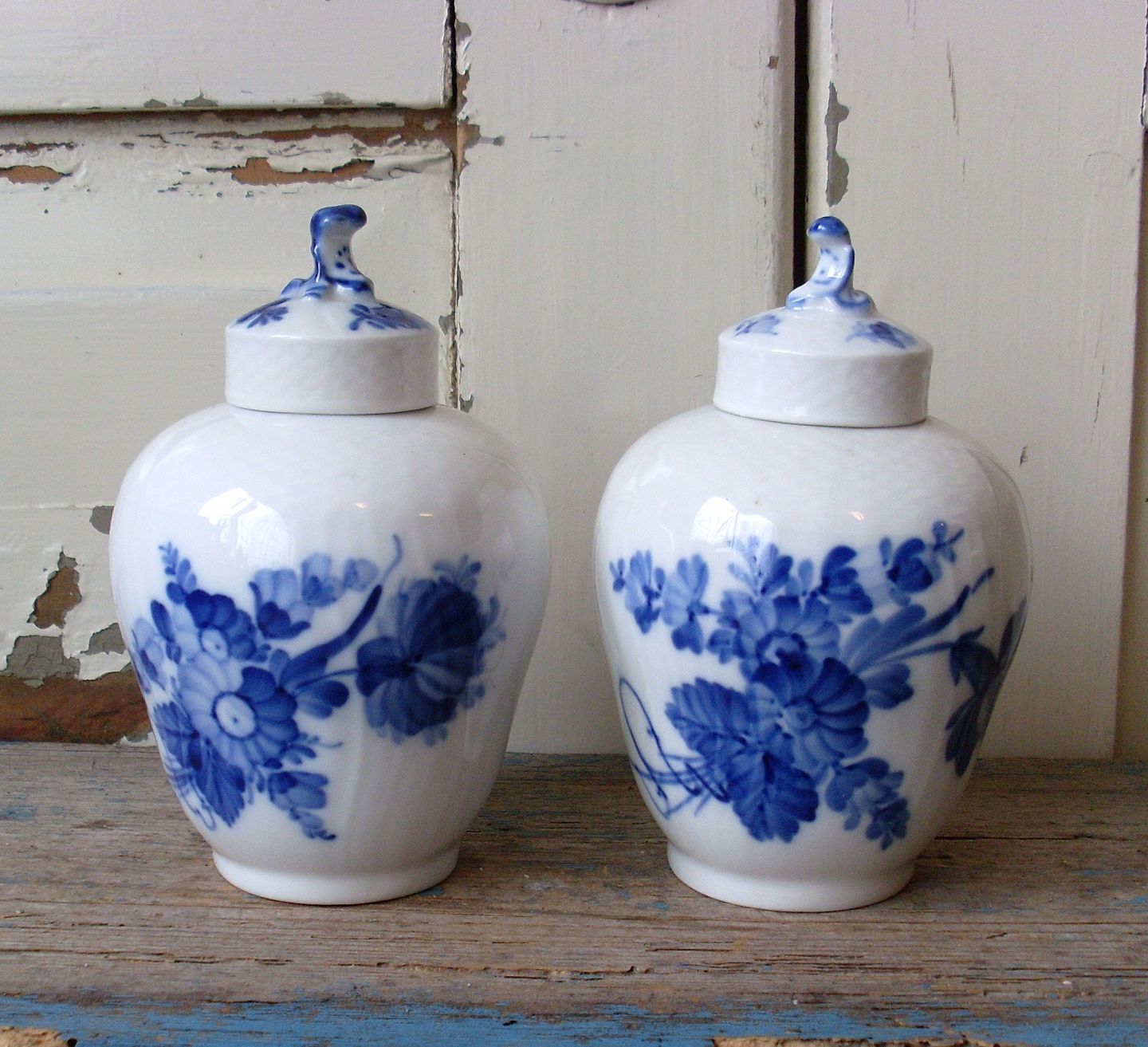 Royal Copenhagen Svejfet Blå Blomst tedåse med låg no. 1684