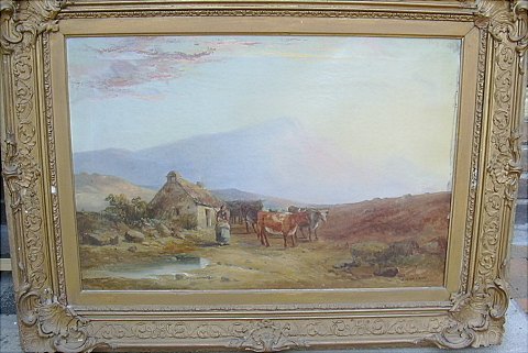 Maleri parti fra scotland. Kvæg ved ved husmandsted,