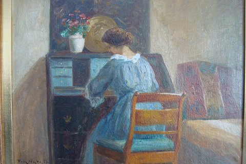 Maleri af Poul Friis Nybo 1918 - Kvinde ved chatol.