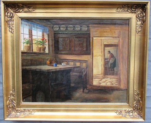 Vermehren, Yelva (1878 - 1980) Danmark: Interiør med kvinde.
