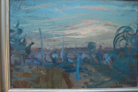 Bagpå blindramme - udstillingsmærkat "Efteraar 1945 - Galatius".