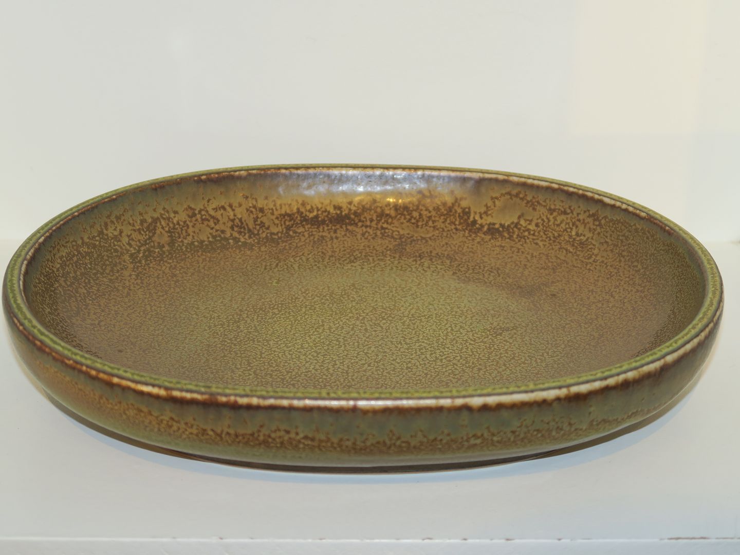 Stor oval bordskål med solfataraglasur af Nils Thorsson
