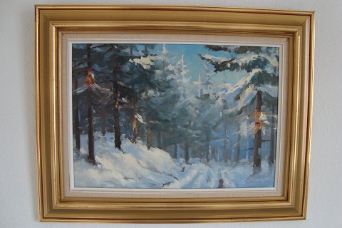 Maleri af E. Thorbjørn - Vinterpart, Rold Skov.