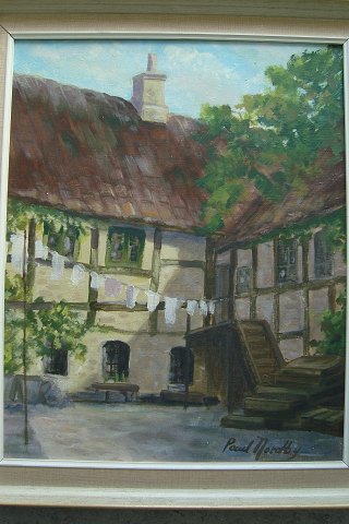 Maleri af Paul Nordby - Gårdeksteriør.
