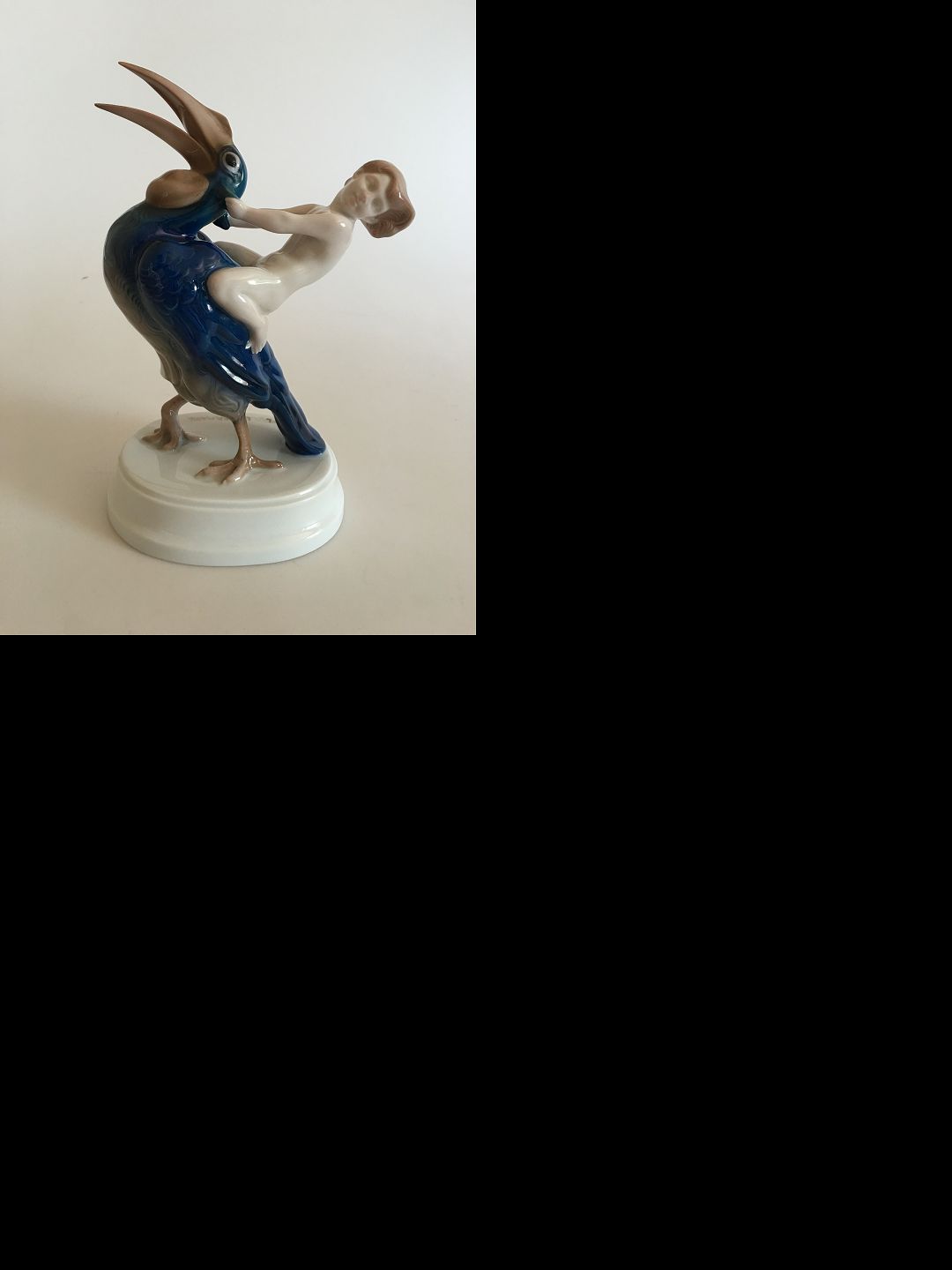 Rosenthal Porcelæns Figurine af Putti på Ryggen af en Tucan. Designet af F. Liebermann. 24 cm høj.