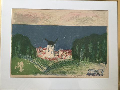 Litografi af Per Lergaard - Kystparti fra Bornholm.