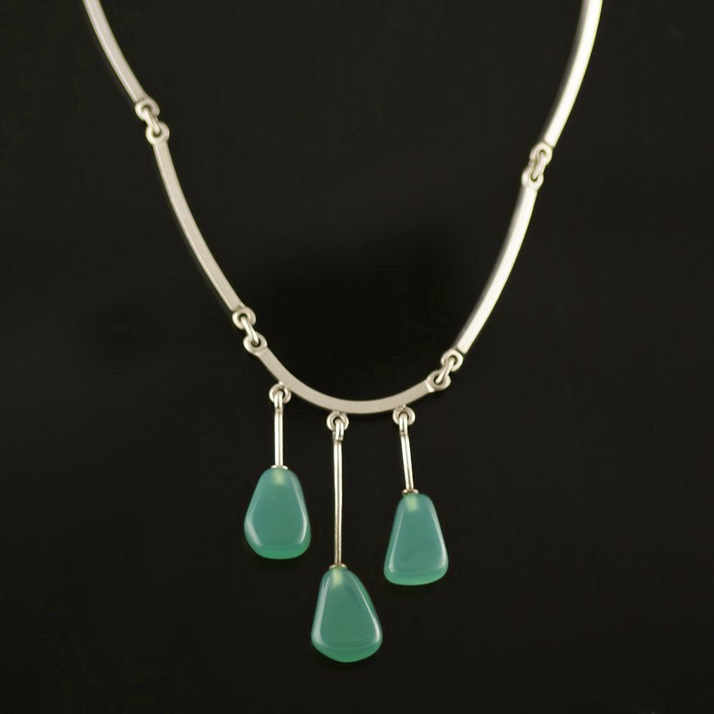 N.E. From Halskæde i Sterling sølv med Grøn agat. 1960erne
