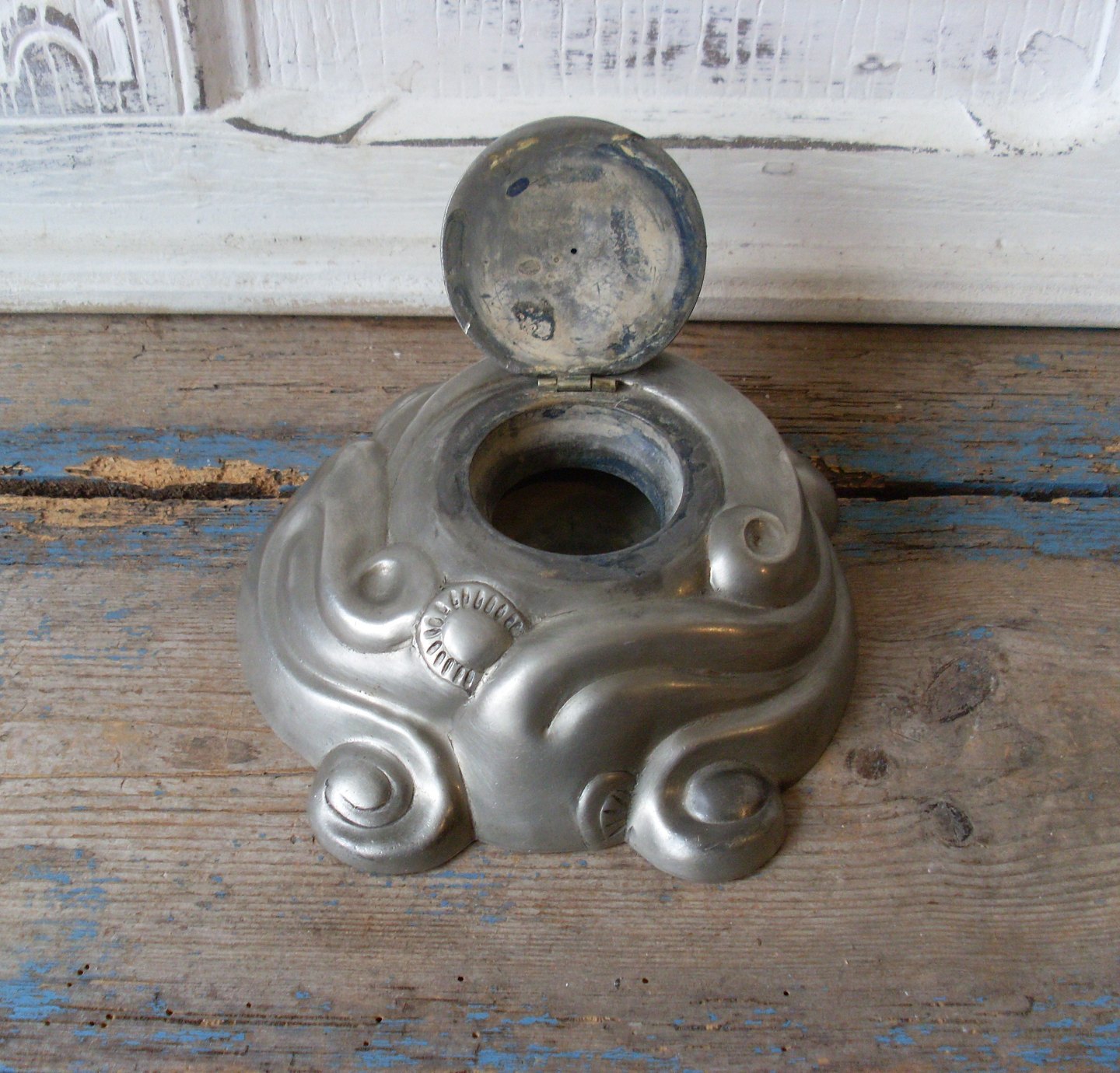 Hertz & Ballin skønvirke blækhus i tin fra 1928.
