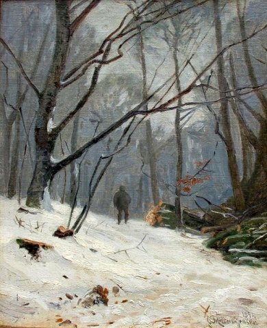 Milton Jensen, Carl (1855 - 1928) Danmark: Vintermotiv med gående.