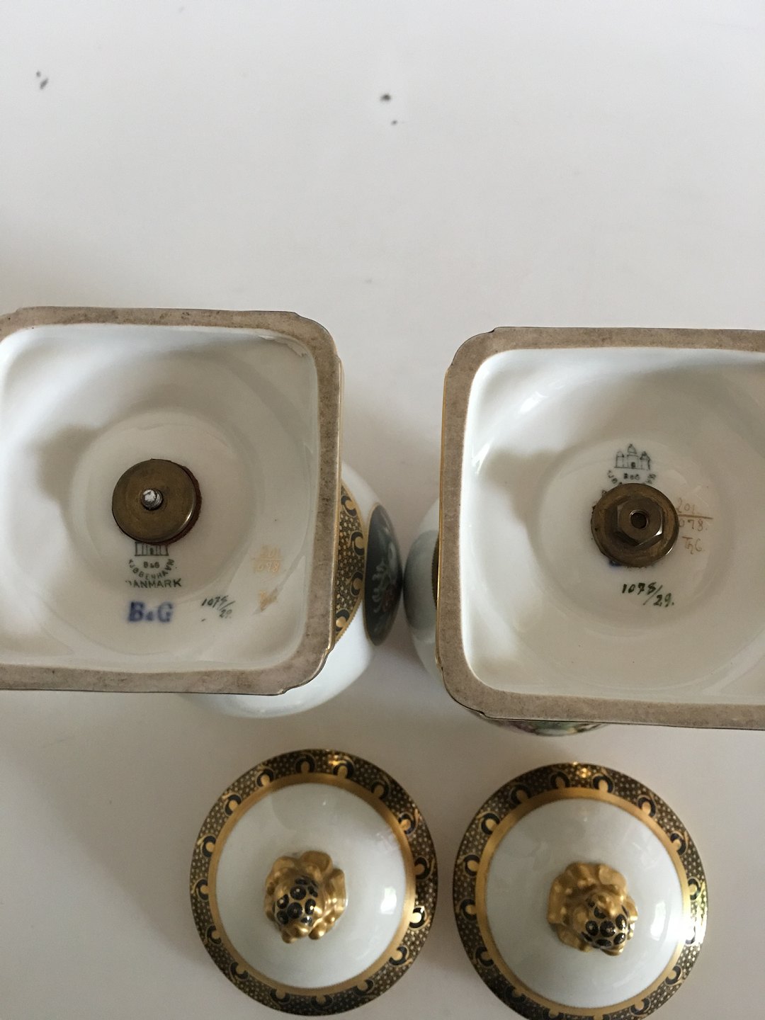 Bing & Grøndahl Par Overglasur vase med guld decoration af Theodor Larsen