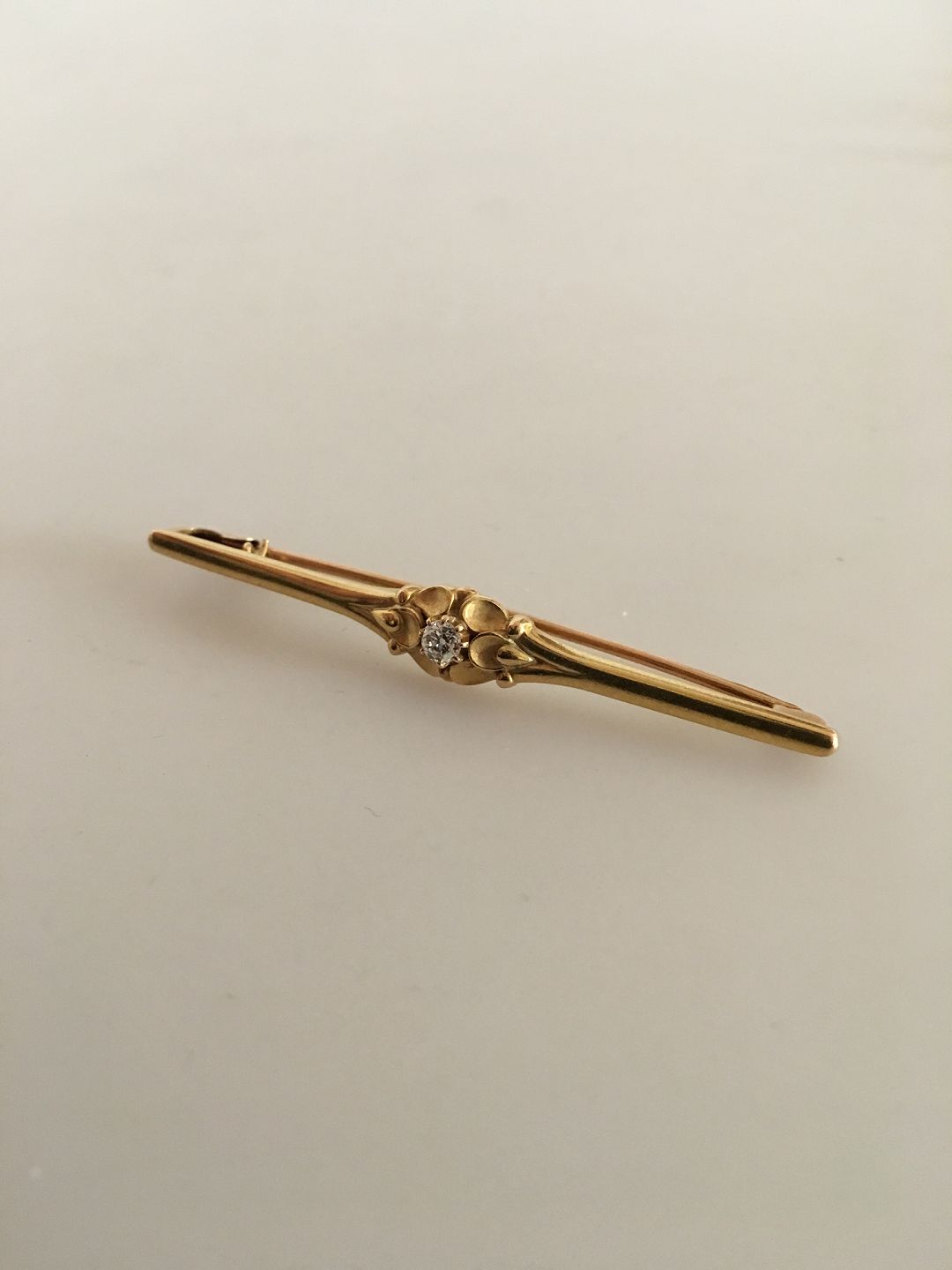 Georg Jensen 18K Guld Broche No. 237 prydet med Diamant. 5.3 cm L. Vejer 5 gram.