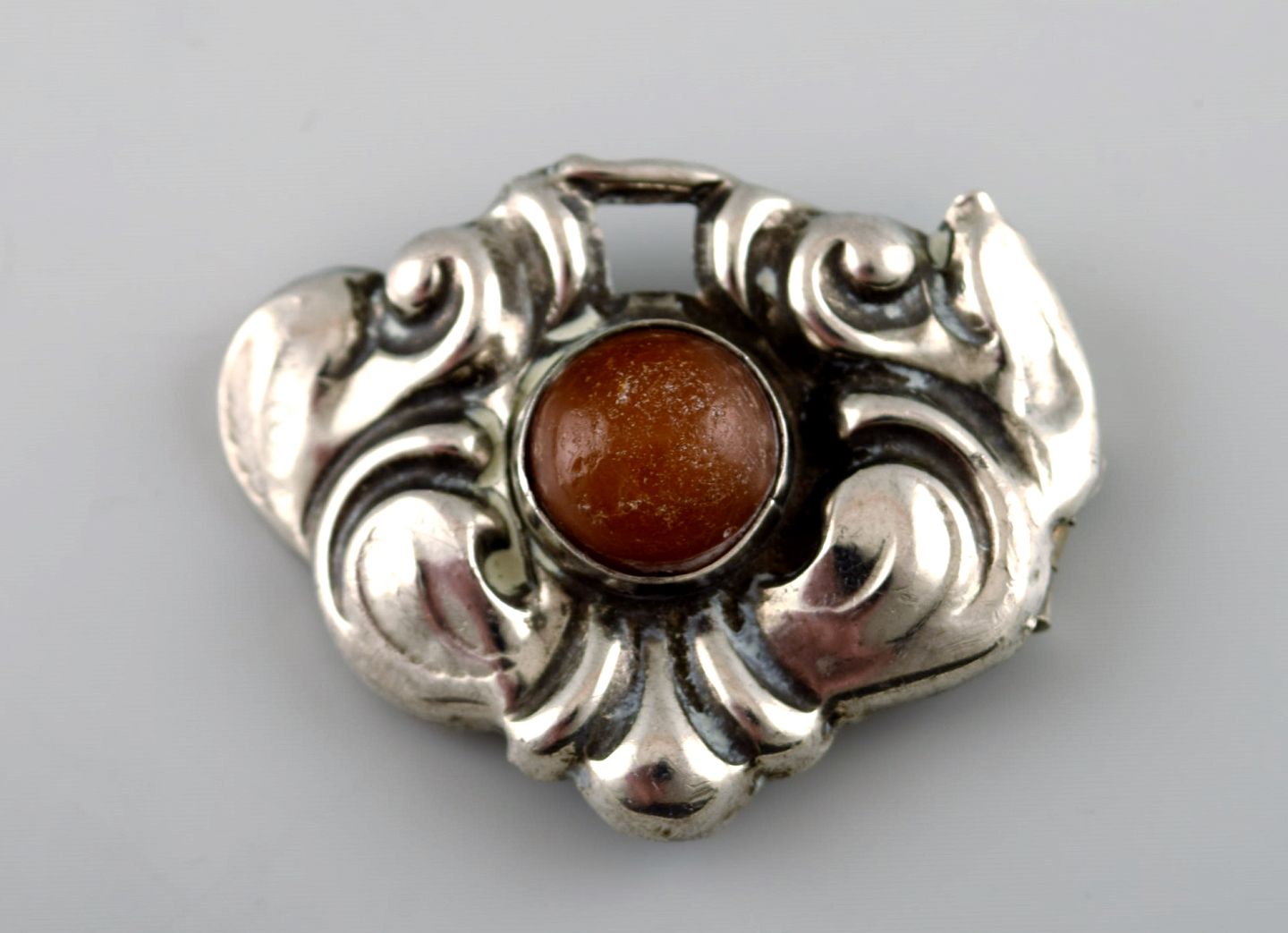 Dansk skønvirkebroche i sølv. Tidligt 1900 tallet.
