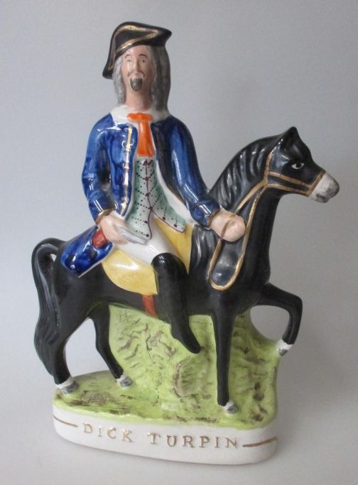 Staffordshire figur, røveren "Dick Turpin", bemalet fajance, ca. 1840, England.