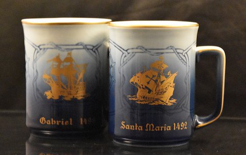 Bing & Grøndahl Krus er blå med maritime mønstre i guldtryk (8132/9221)
