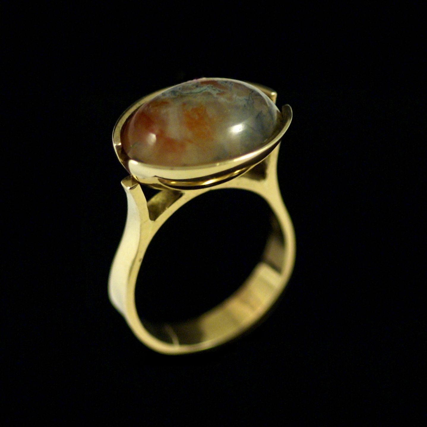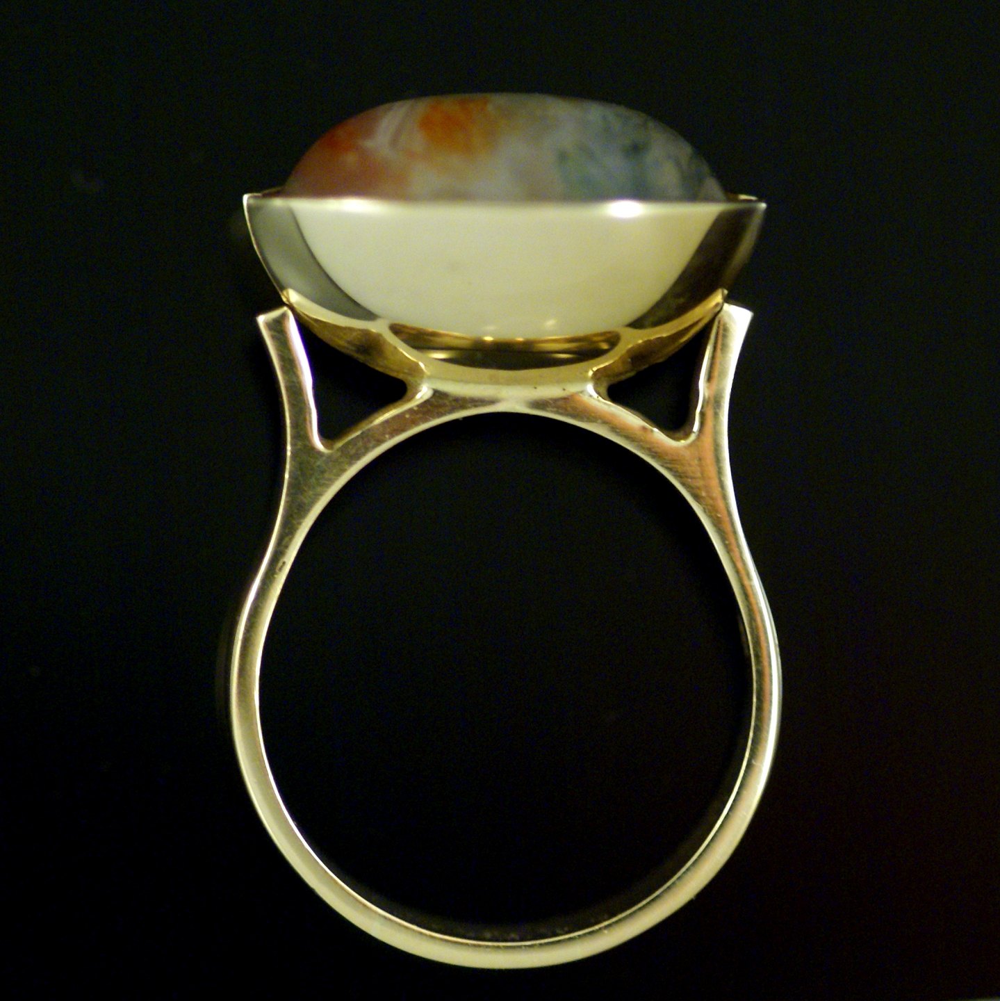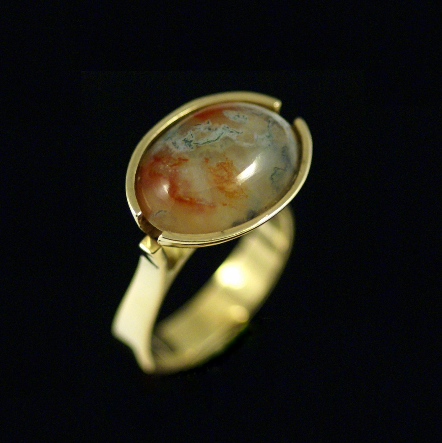 Conrad Petersen. Ring i 14k guld med mosagat.