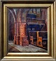 Hagedorn-Olsen, Thorvald (1902 - 1996) Danmark: Kirkeinteriør. Olie på lærred. Signeret: Th. H. Olsen 1931. 35 x 30 cm.