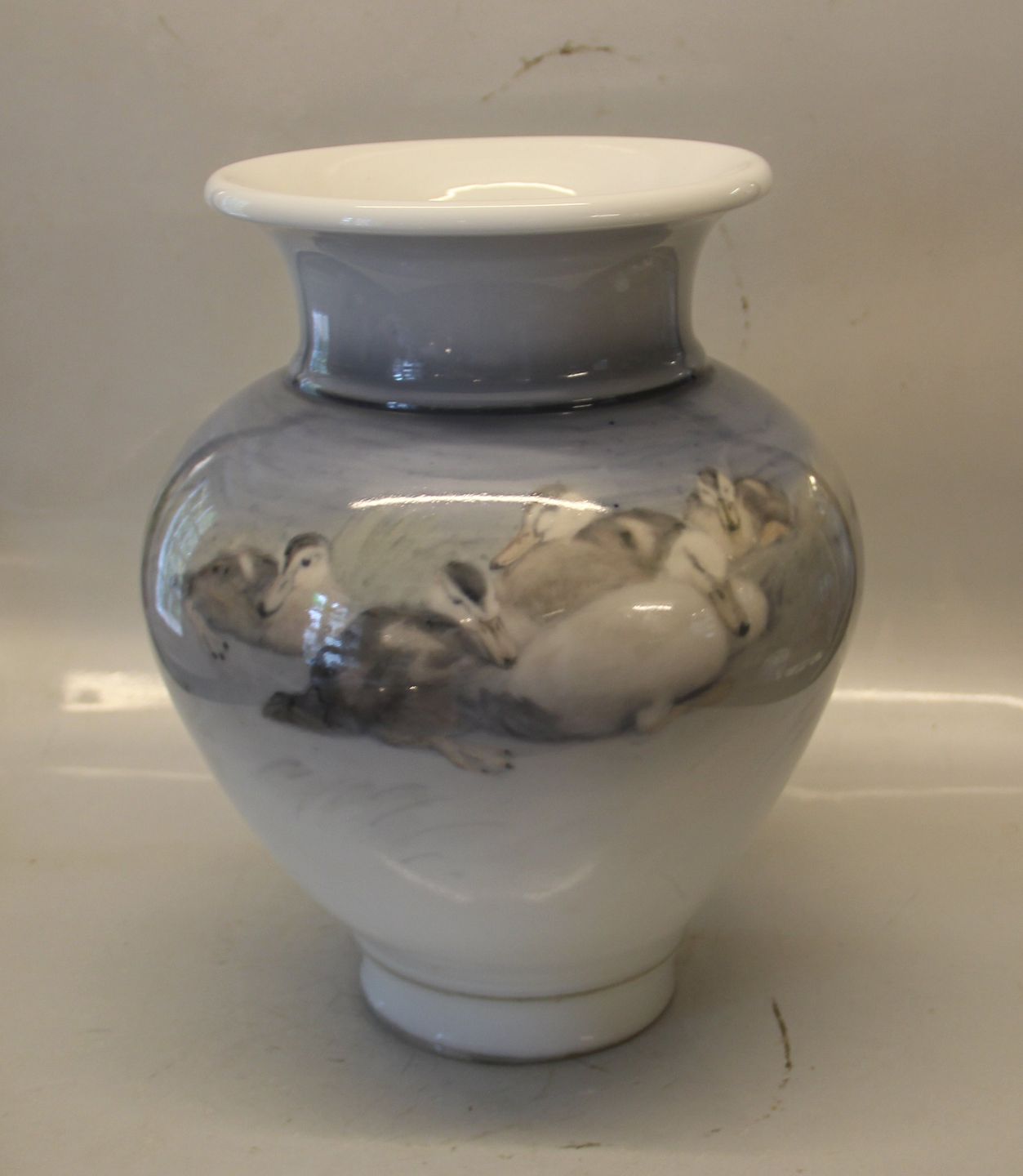 Kongelig Dansk Kgl. Unikavase 15/1 1920 Vilhelm Theodor Fischer Dekoreret med ænder 32.5 cm