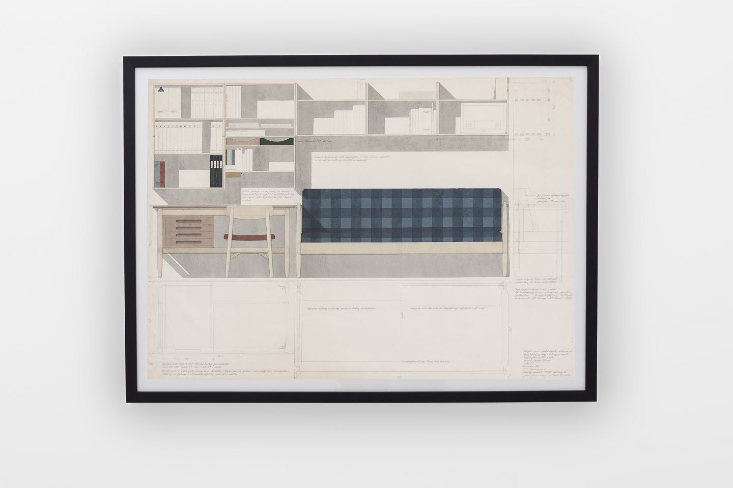 Original akvarel af arbejdsbord- og område. Proveniens: arkitekt John Vedel-Riepers hjem.