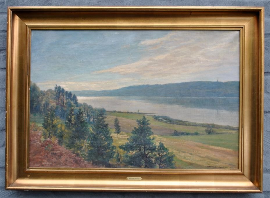 Bentzen-Bilkvist, Fritz (1865-1934): Herbsttag auf Juelsø. Öl auf Leinwand. Signiert: Bentzen-Bilkvist 1920. 48 x 72 cm.
