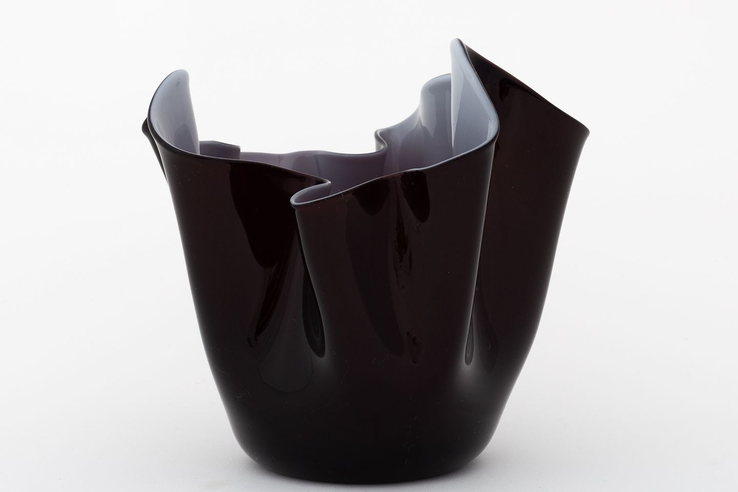 Fazzoletto vase i mørkelilla glas fra 1950'erne. Model: Handkerchief.