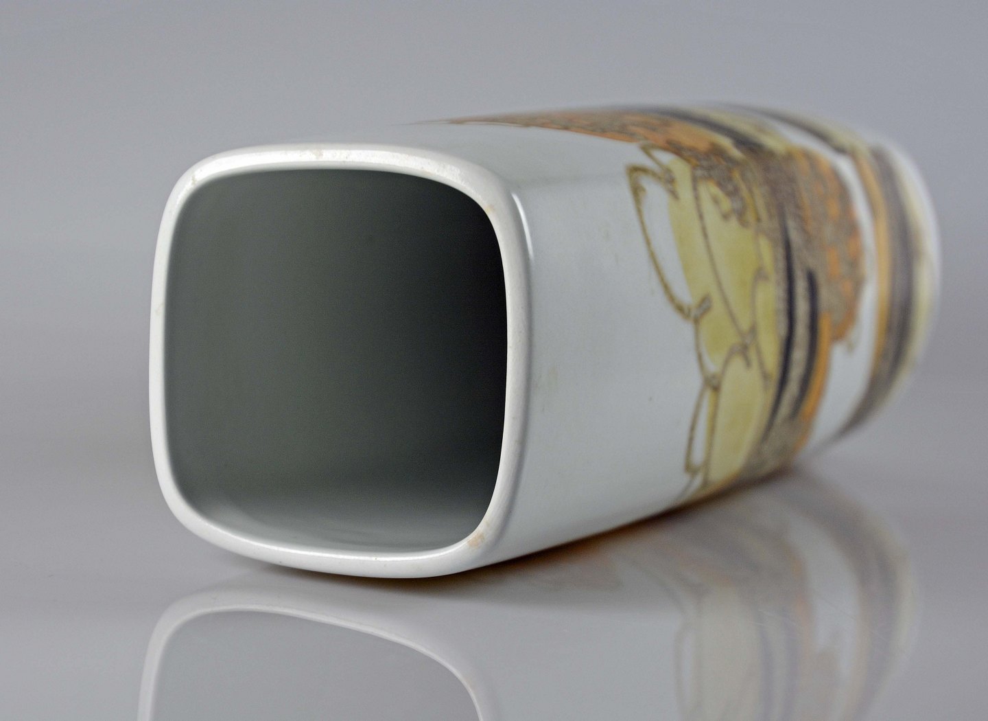 Høj kantet vase i fajance fra Royal Copenhagen fajance nr. 962/3764, Baca. Design af Ellen Malmer