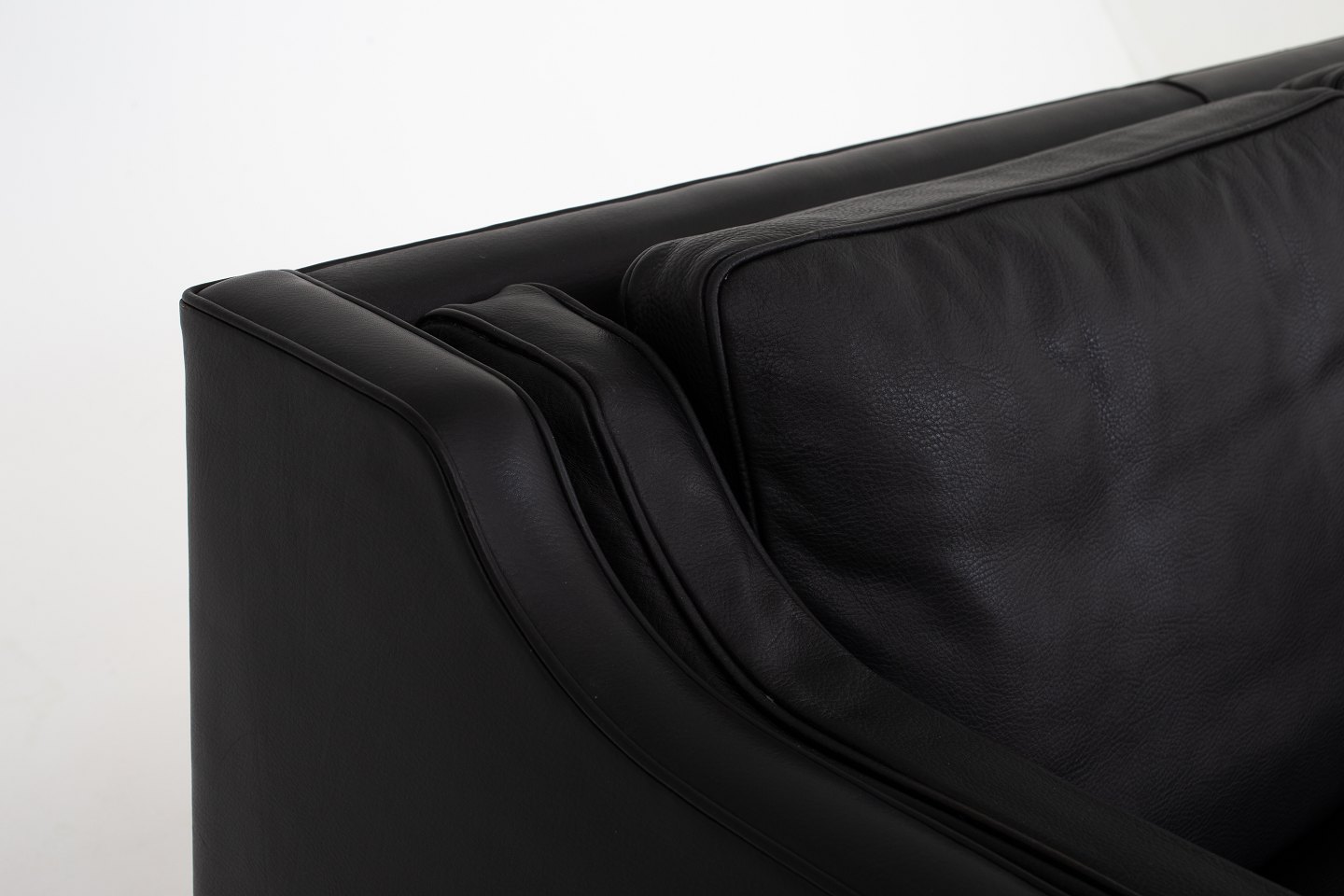 BM 2212 - 2 pers. sofa i originalt, sort læder på ben af mahogni.