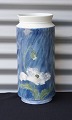 Royal Copenhagen cylinderformet vase (2935/5780) dekoreret i blåt og hvidt i form af nøgen kvinde og en valmue
