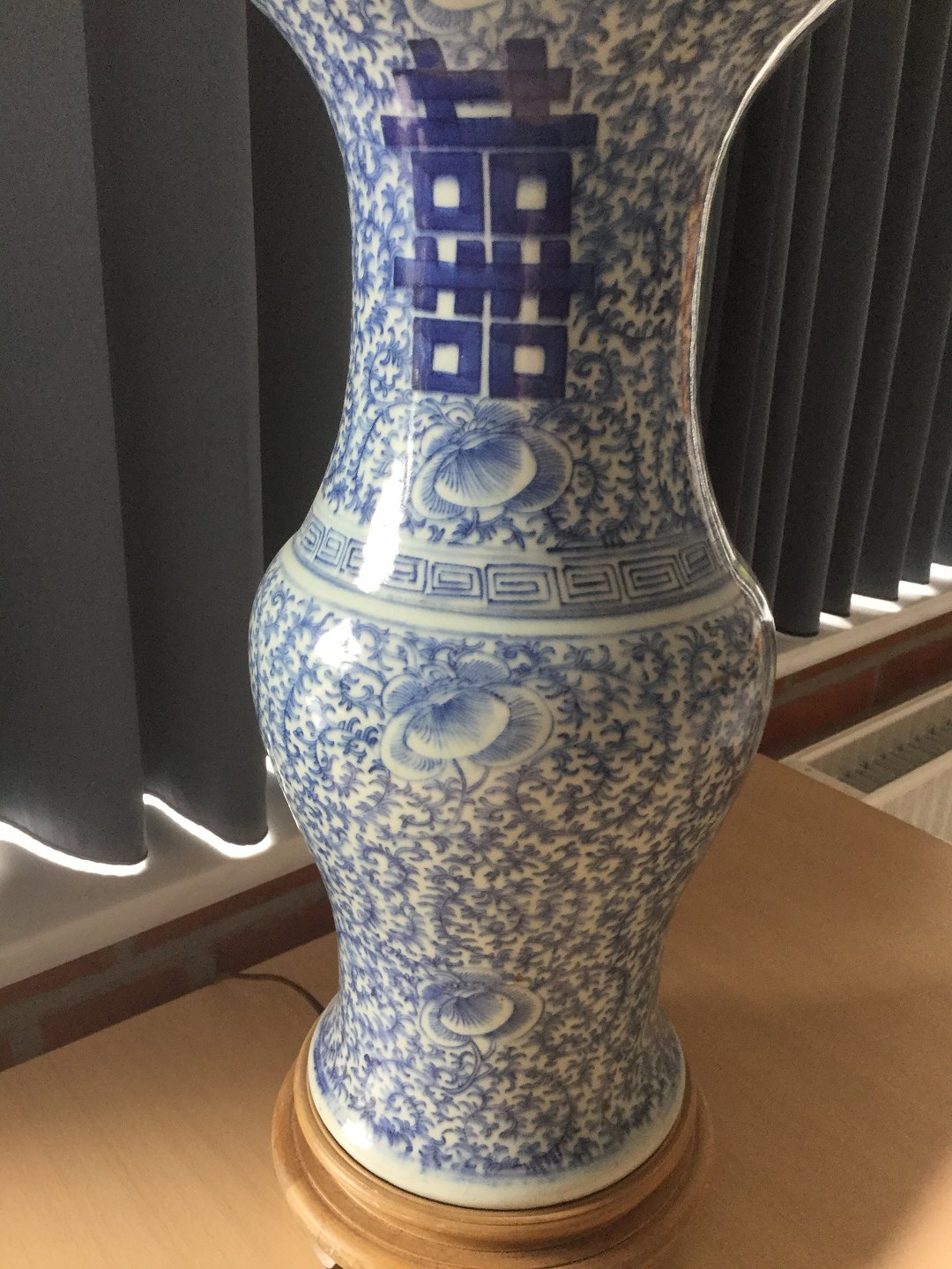 Gammel Kinesisk vase omlavet til bordlampe.