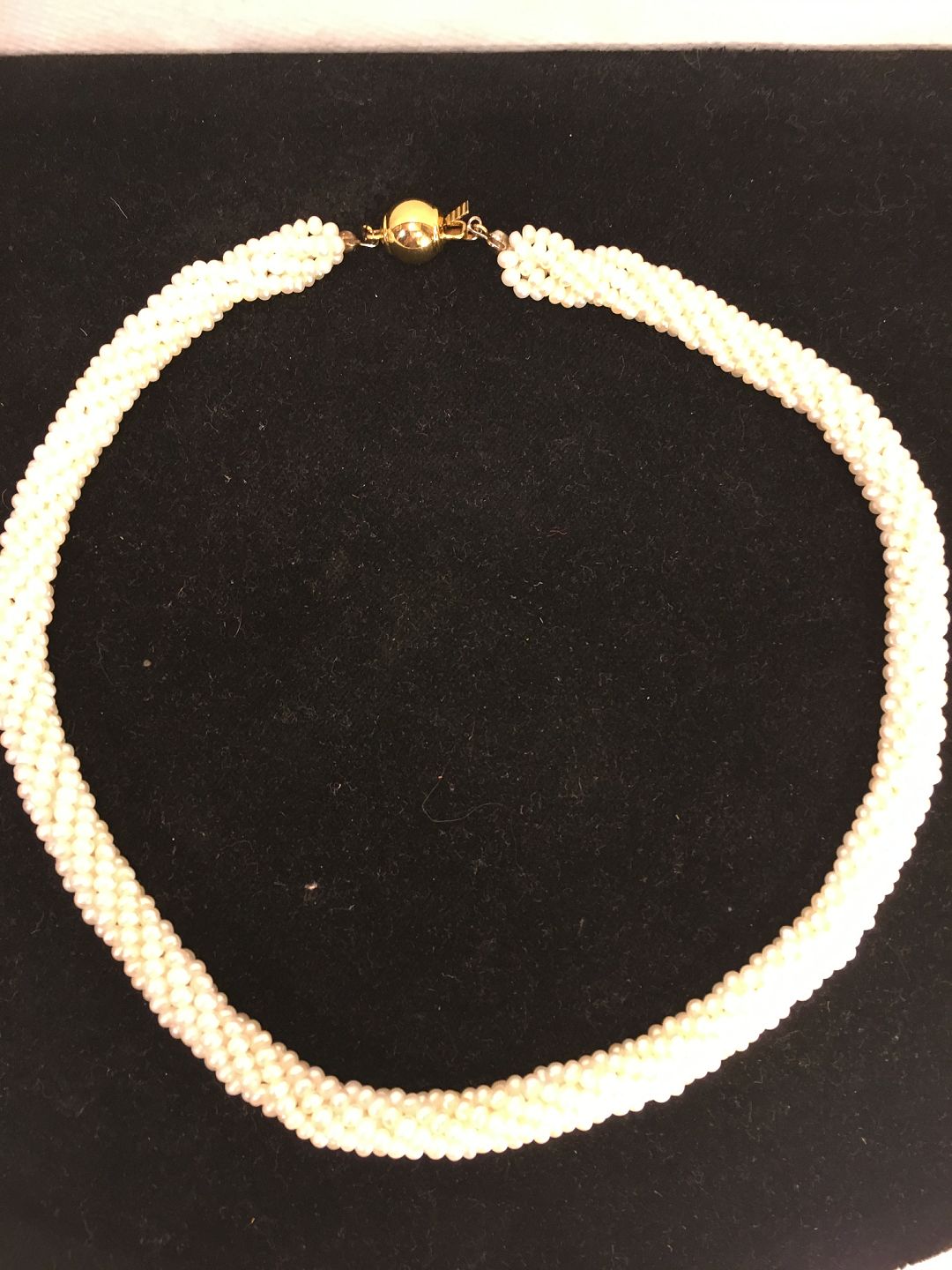 Perle Halskæde 6 radet snoet med forgyldt lås.