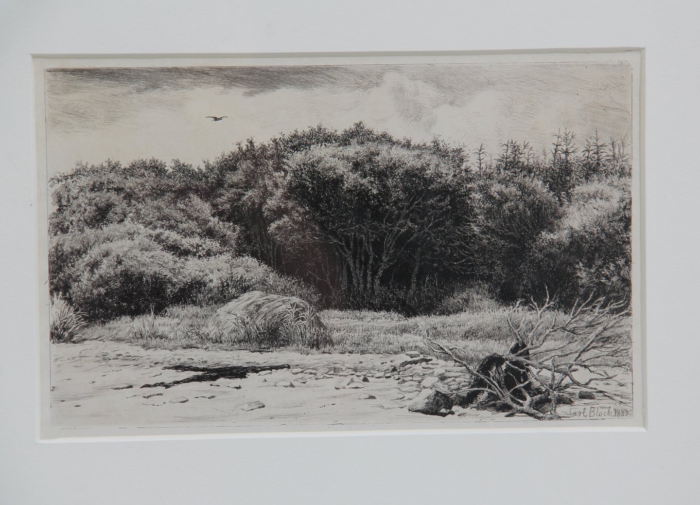 Radering Carl Bloch 1883 Landskab 34.5 x 44.5 cm inklusiv ramme