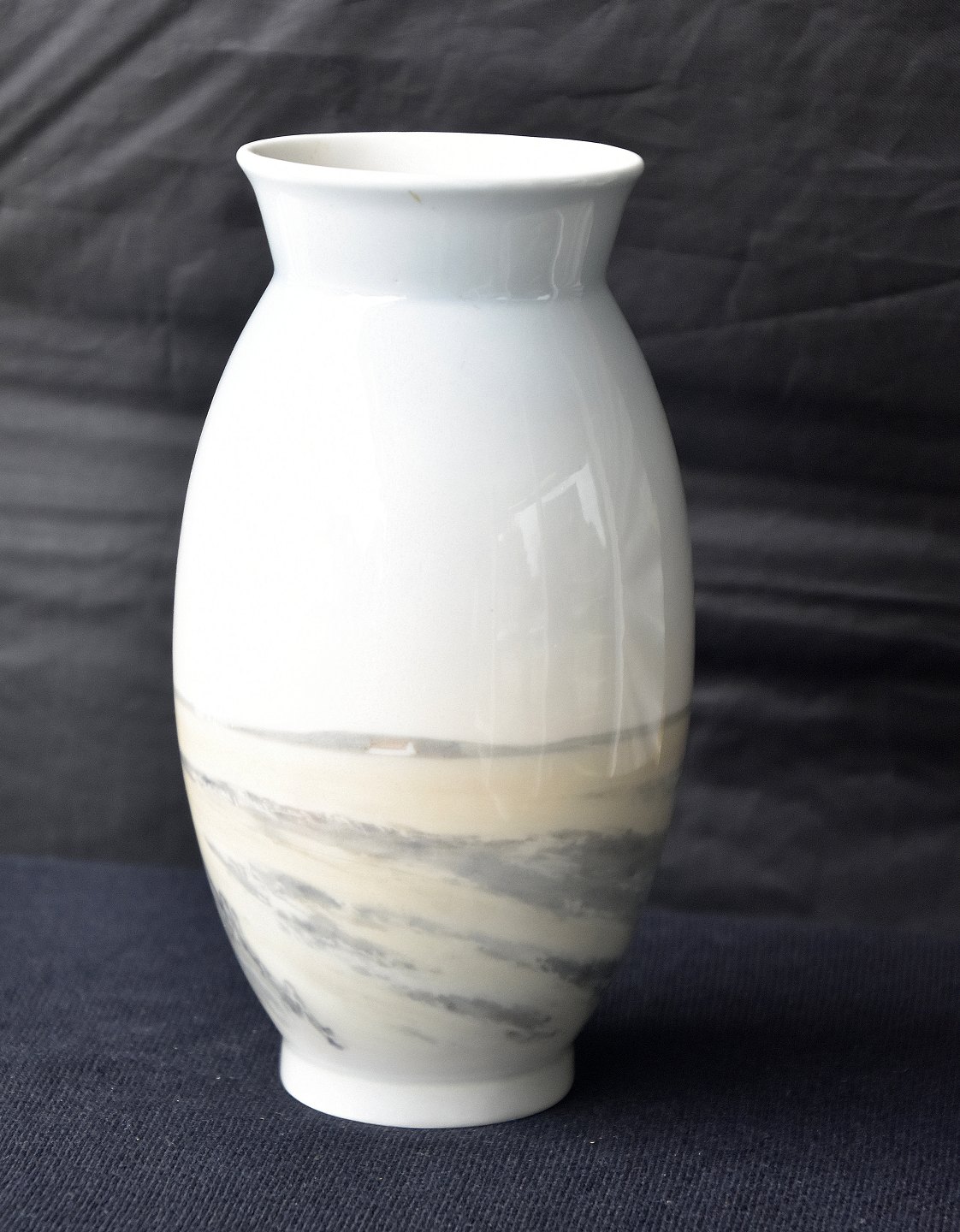 Bing & Grøndahl, vase 8682-420, 1. sortering. Vasen er dekoreret med landskab og motiv af vindmølle