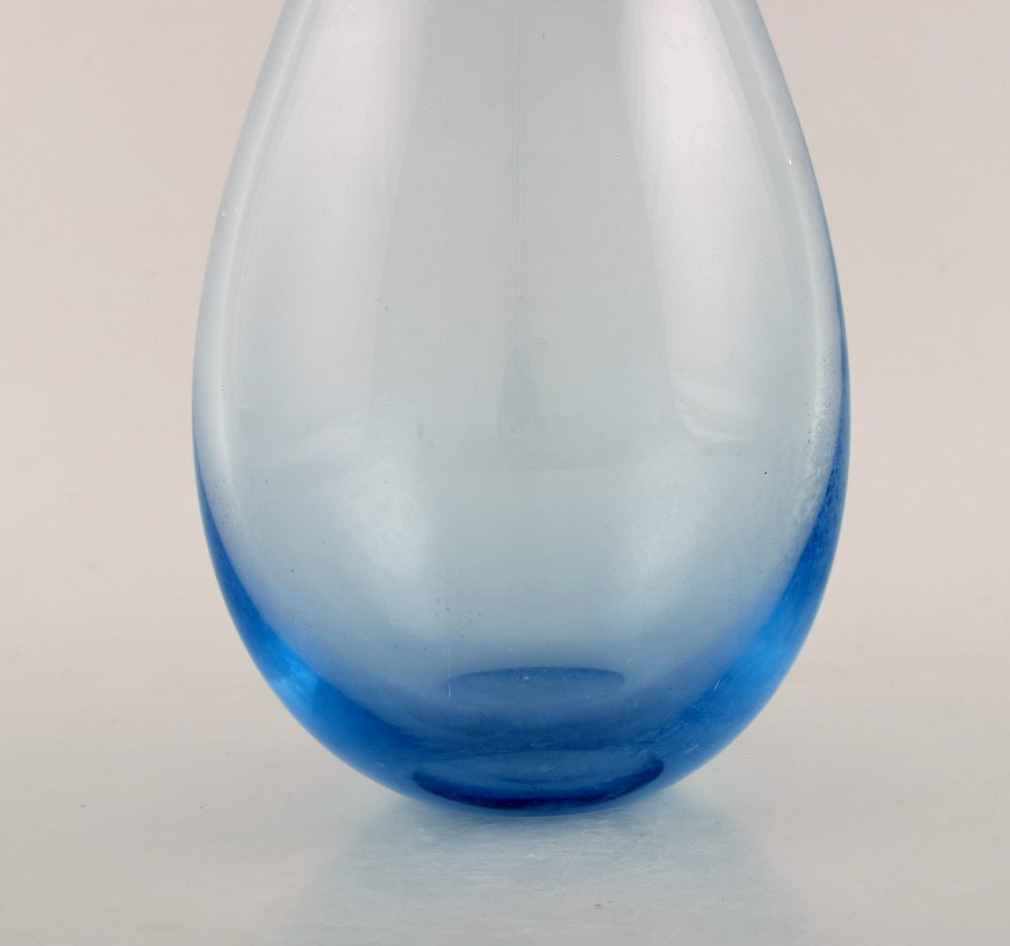 Per Lütken for Holmegaard. Næbvasen. Kunstglas i lyseblå nuancer. 1950'erne. Smukke vase af høj kvalitet.