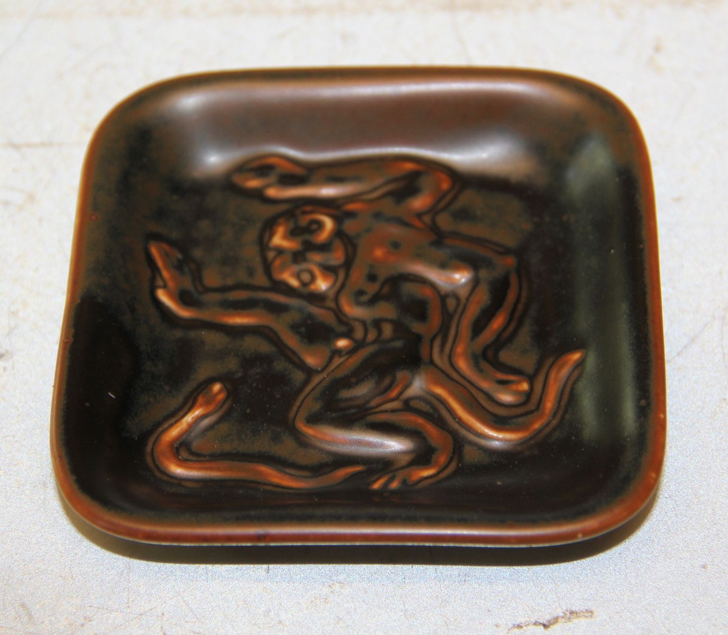 Royal Copenhagen Art Pottery 21666 RC Tray with monkey and snake ca 9.6 cm , January 1959 KK