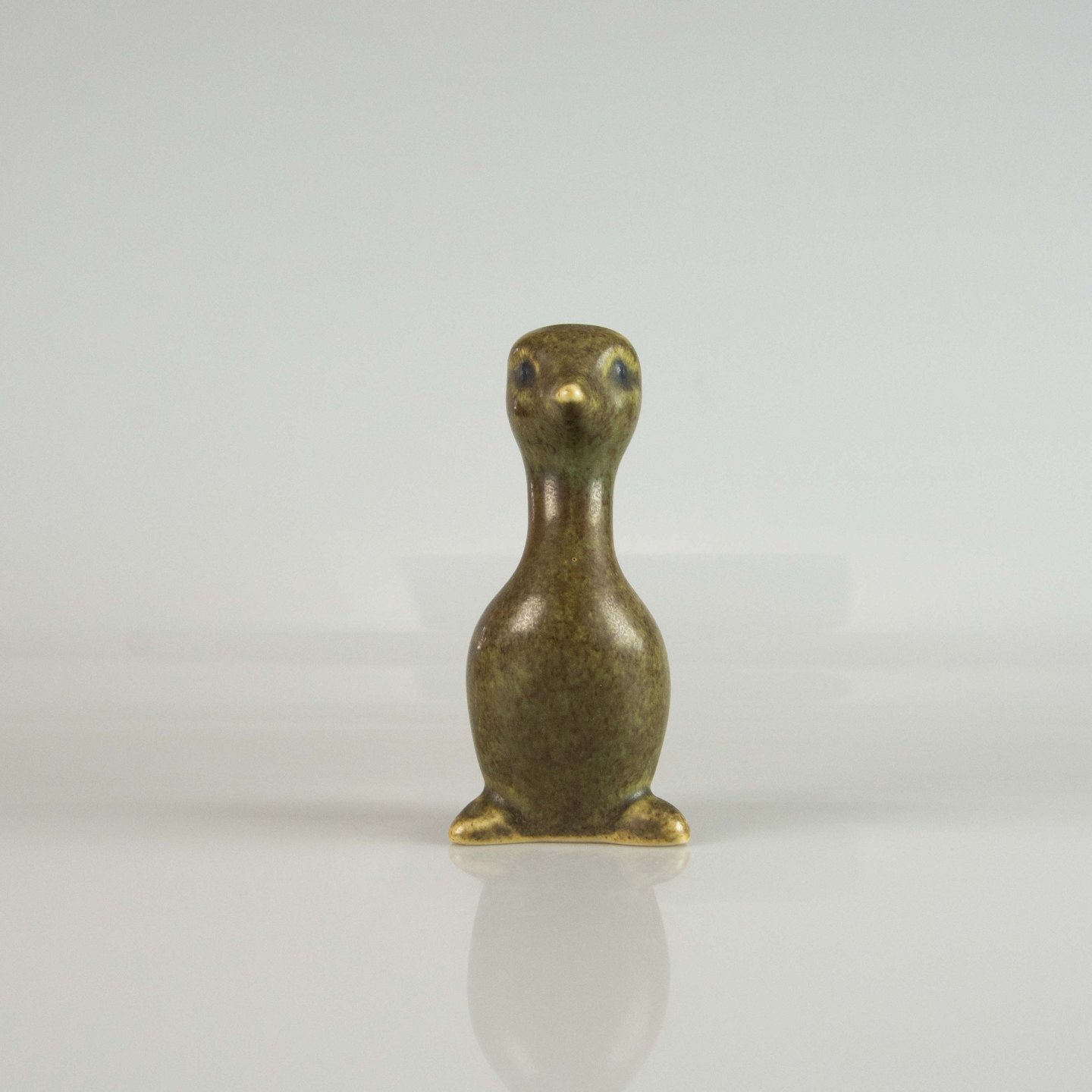 Figur i stentøj med motiv af lappedykkerunge
