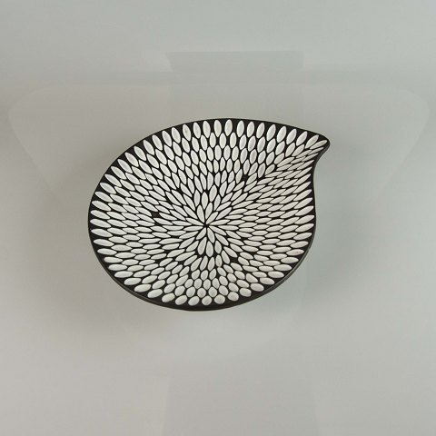 Nyereformet fad i keramik med glaseret hvidt mønster