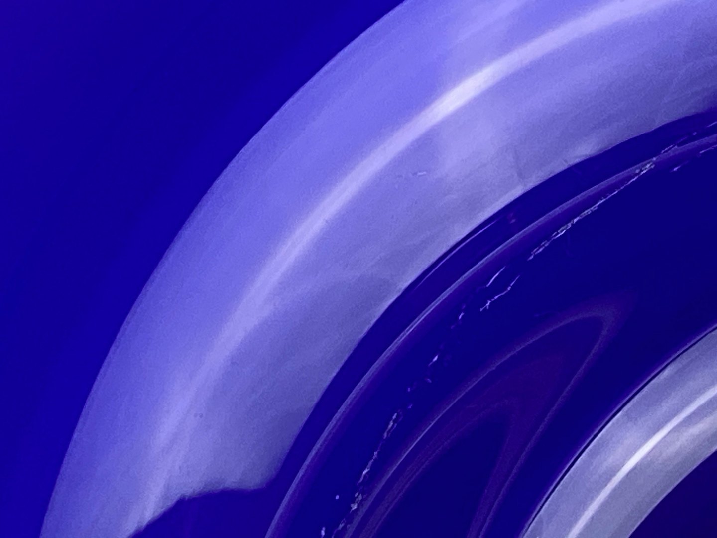 Skål af koboltblåt glas støbt i træform. Slitage.