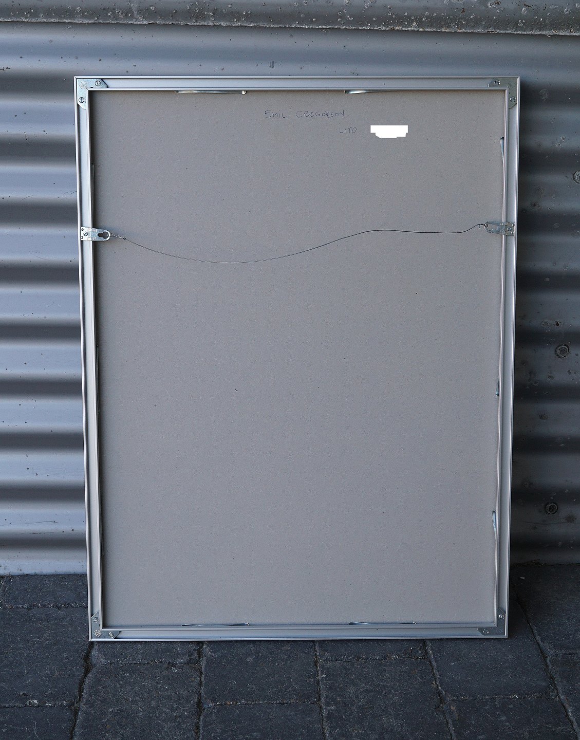 Billede, baggrund, grå, glas og aluminiums ramme med passepartout